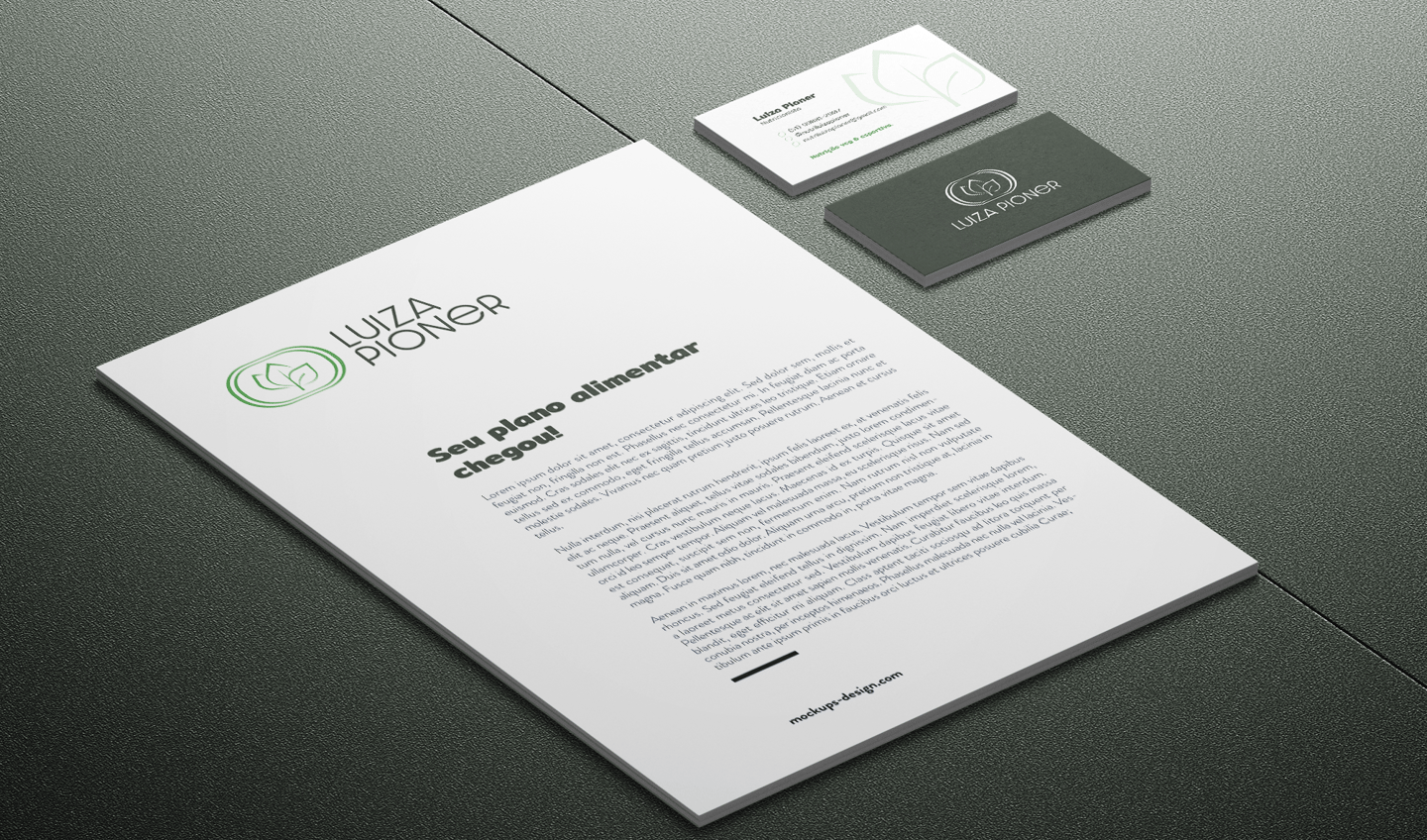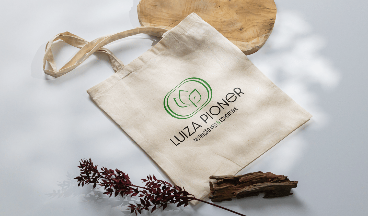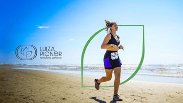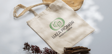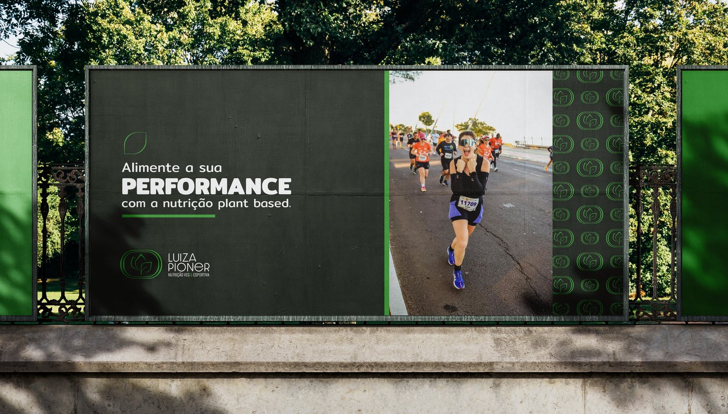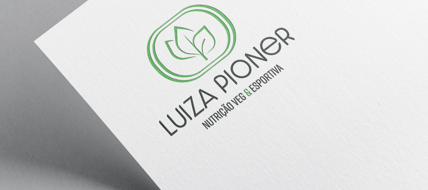 Luiza Pioner é nutricionista especializada em vegetarianismo e esporte. Sua marca apresenta de forma bastante evidente essas duas ideias através das folhas, representando a alimentação plant based, o vegetarianismo, a sustentabilidade e a ética animal. Também como parte da composição, as raias da pista de corrida atletismo, que representa o esporte e principalmente a corrida, além de treinos e metas.